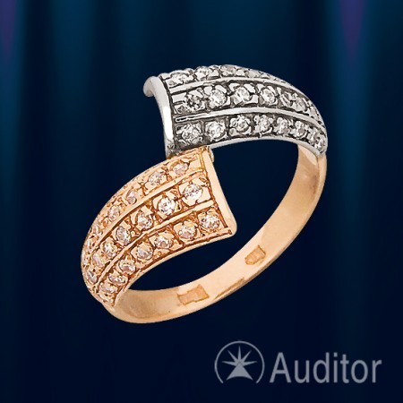 AUDITOR - Изготовлено для Auditor GmbH Кольцо выполнено из красного российского золота 585 пробы в сочетании с белым золотом и украшено бесцветными цирконами, которые являются идеальной имитацией бриллиантов.