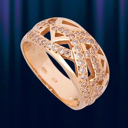 AUDITOR - Изготовлено для Auditor GmbH Кольцо изготовлено из красного российского золота 585 пробы, украшено бесцветными цирконами, которые являются идеальной имитацией бриллиантов. Ширина 10мм., вес 7,5 грамм.