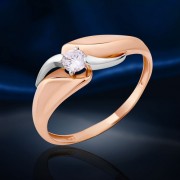 Кольцо из красного/белого золота 585 пробы с цирконием ¢ 1,0 мм