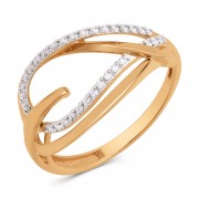 Мелкие циркониевые огранки проходят по линиям и усиливают игру света, не перегружая дизайн. Контраст между теплым красным золотом и холодным родиевым покрытием придает кольцу дополнительную глубину и современный вид.