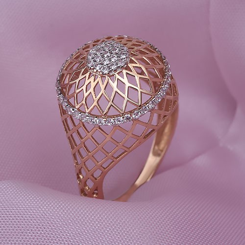 Кольцо из русского красного/белого золота 585° с 7 фианитами ок. ¢ 3,0 мм