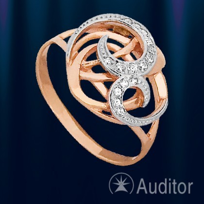 TOPAZ - Костромской Ювелирный Завод Кольцо выполнено из красного и белого российского золота 585 пробы и украшено бесцветными цирконами, которые являются идеальной имитацией бриллиантов.
