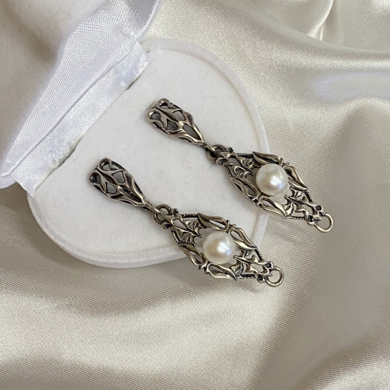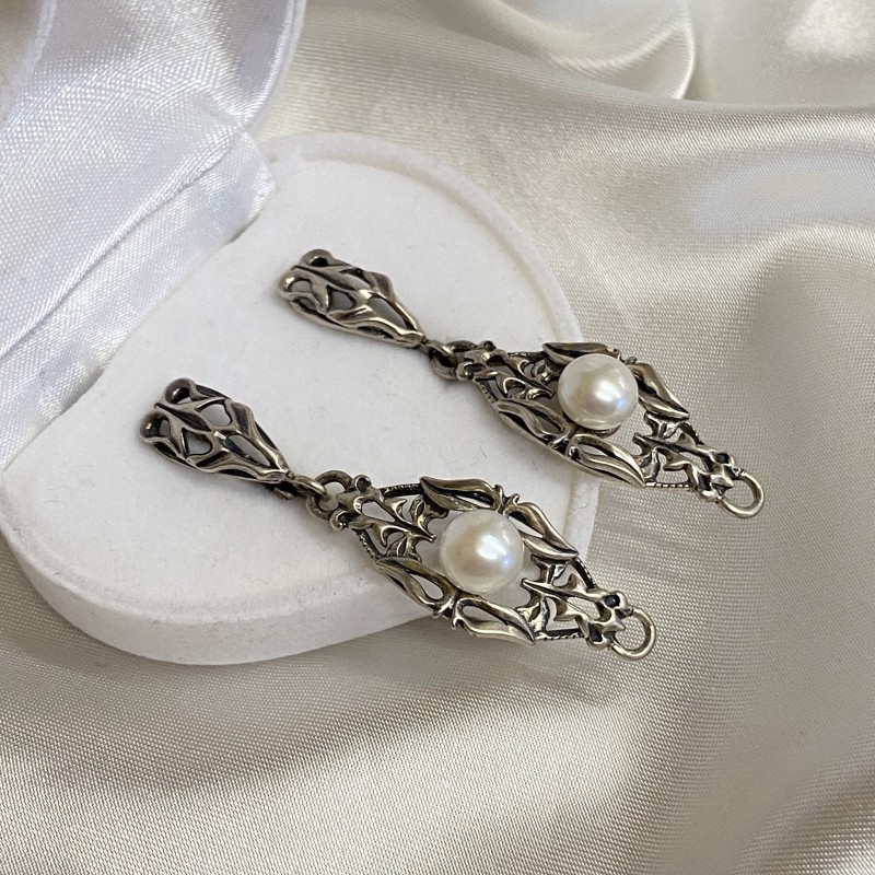 Оригинальные серьги в античном стиле выполнены из черненого серебра 925 пробы, украшены нежным