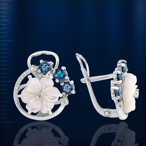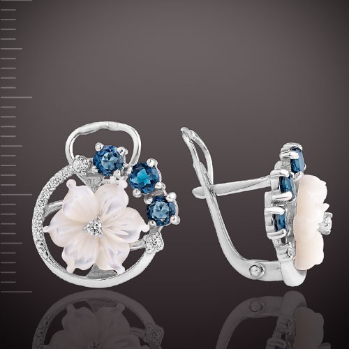 Серьги из серебра 925 пробы с перламутром, топазом Лондон и фианитами