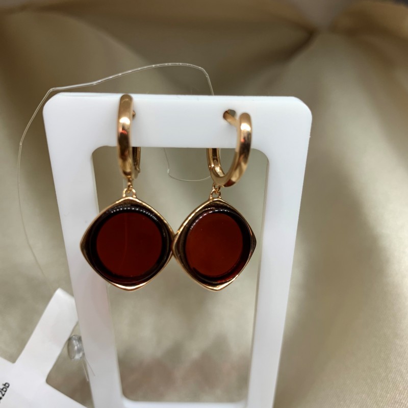 Позолоченные серебряные серьги с янтарем