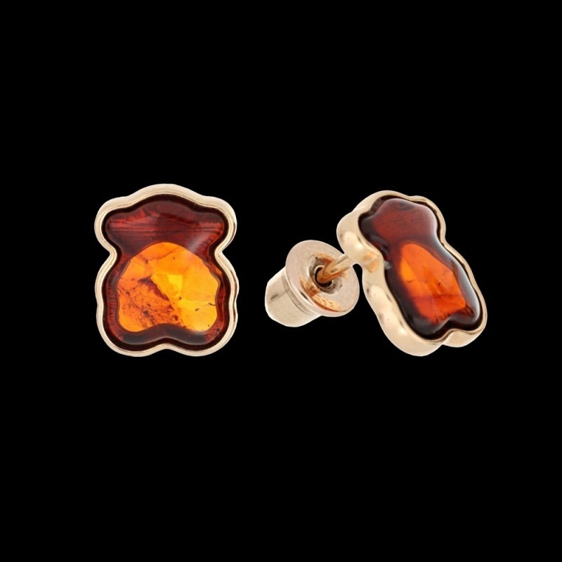 Позолоченные серебряные серьги с янтарем