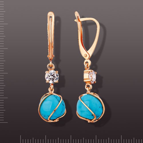 Соблазнительные серьги с бирюзой ( ¢ 10,0 мм) и фианиты ¢ 5,0 мм