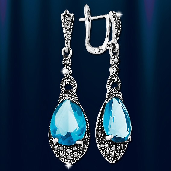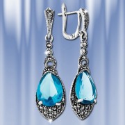 Серьги с аквамарином, марказитом. Серебро 925 пробы