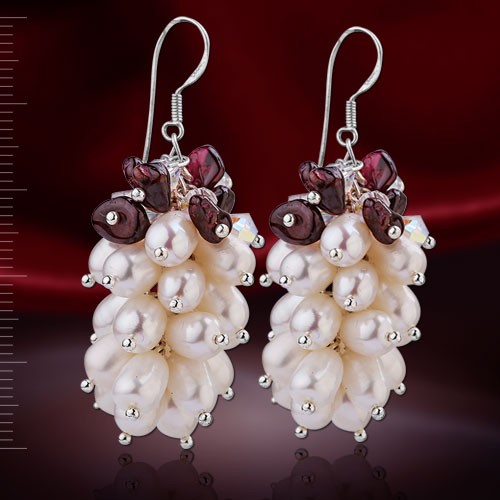 Серебряные серьги с жемчугом и гранатом