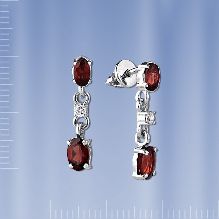 Изделие по заказу фирмы AUDITOR Серьги-пуссеты из серебра 925° с гранатом (5 х 3 мм и 6 х 4 мм), цирконием Ø 1. Диаметр ок. 8 мм.