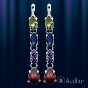 SAMORODOK - Санкт-Петербург Серьги из черненой 925-й пробы, украшенные крупными цветными цирконами. Серьги с английским замком