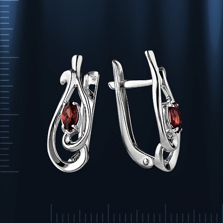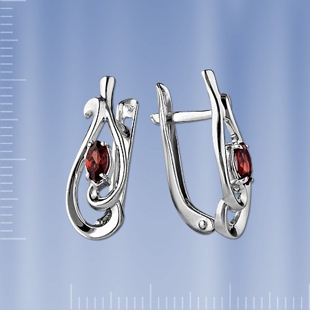 Серьги из серебра 925 пробы, украшенные гранатом (6 х 3 мм). Серьги с английским замком.