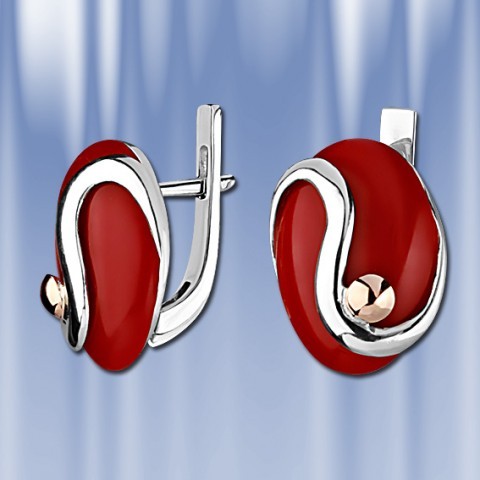 Серьги из серебра 875 пробы с кораллом. Длина около 18 мм.