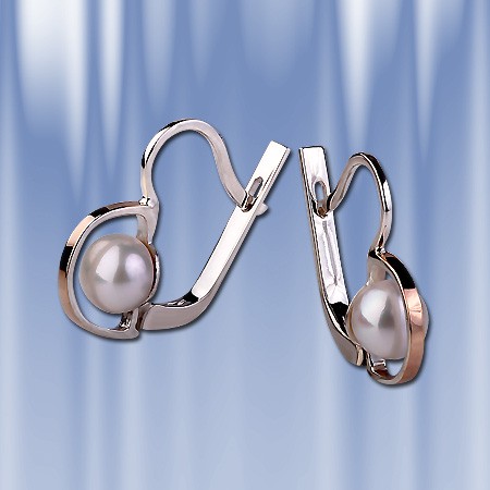Серьги из серебра 875° и золота 375° с жемчугом.