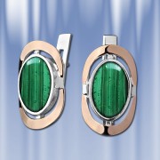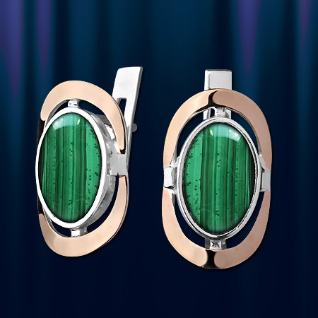 Серьги из серебра 875 пробы и золота 585 пробы с малахитом.
