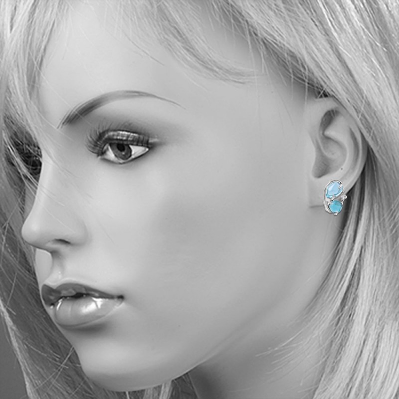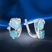 Нежные серьги из серебра 925 пробы со вставкой из аквамарина ситалл, турмалина Параиба и сверкающих цирконий.