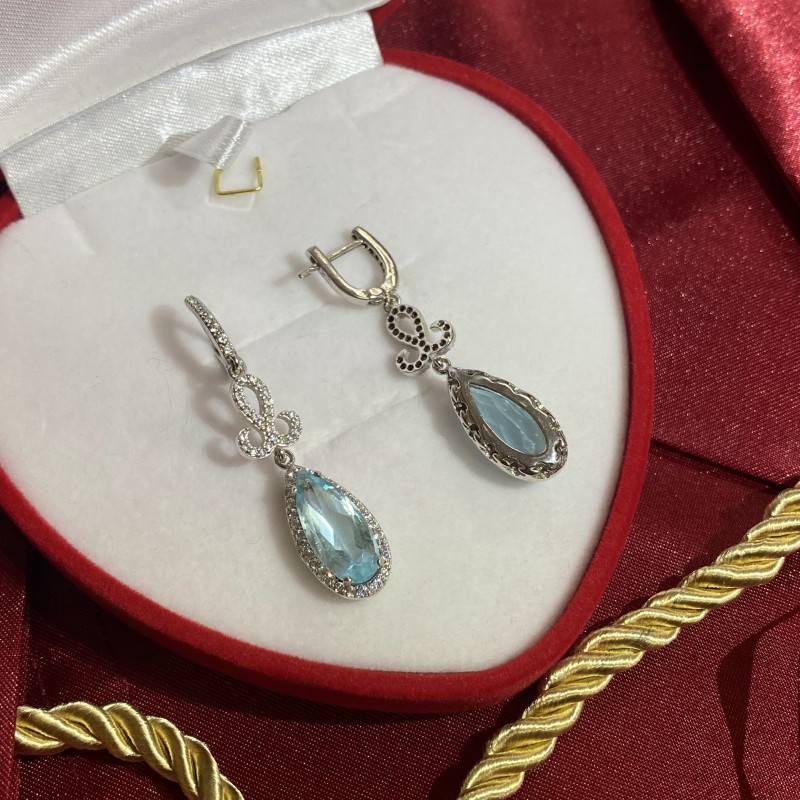 Вставки: 2 капли аквамарина 17,0 х 7,0 мм; Цирконий Ø 1,0 мм