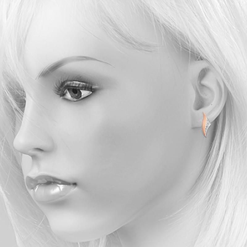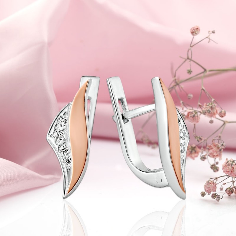 Шикарные серьги из серебра 925 пробы с акцентами из розового золота 375 пробы со вставками из сверкающих цирконий! Такое сочетание двух ценных металлов выглядит очень элегантно. Прекрасный подарок или возможность побаловать себя.