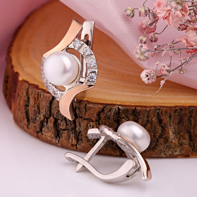 родированного серебра 925 пробы с акцентами из розового золота 375 пробы со вставками из сверкающих цирконий и культивированного жемчуга! Такое сочетание двух ценных металлов выглядит очень элегантно. Прекрасный подарок или возможность побаловать себя.