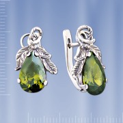 SAMORODOK - Санкт-Петербург Серьги с фианитом (15 х 9 мм). Серебро 925. Серьги с английским замком. Высота ок. 22 мм.