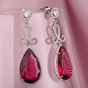 Шикарные, модные серьги в виде пуссет. Серебро 925 пробы с крупным родолитом и сверкающими циркониями. Отличный подарок или возможность побаловать себя.