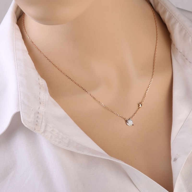 Нежное и романтичное колье из российского белого/красного золота 585 пробы со вставкой из