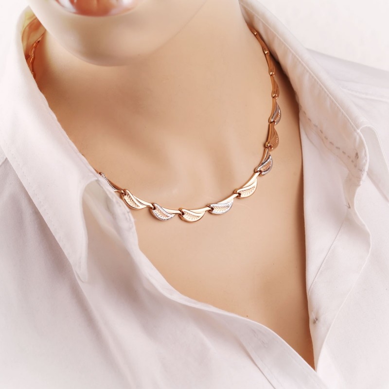 Золотой кольер русский золото 585 Bicolor. Изящный и объемный золотой кольер, изготовленный из 585