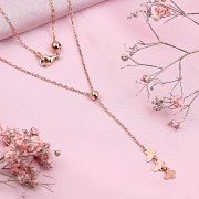 Нежное и романтичное колье из розового золота 585 пробы с оригинальной, модной подвеской с вытяжным механизмом. Цепочка - якорная оплетка с ромбовидной огранкой.