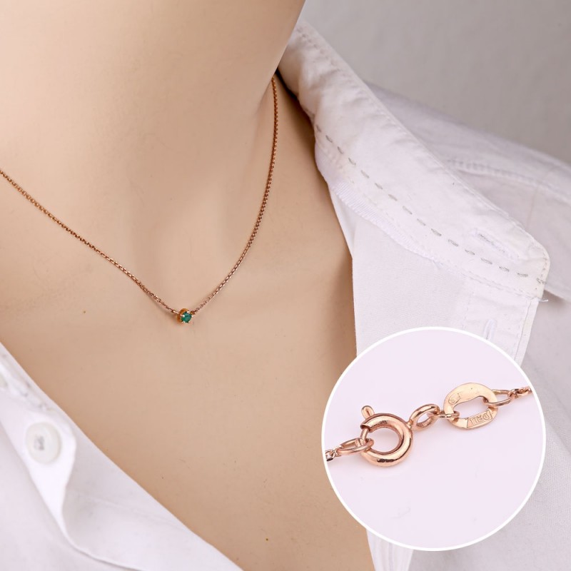 красного золота 585 пробы с изумрудной вставкой. Якорное плетение с ромбовидной огранкой.