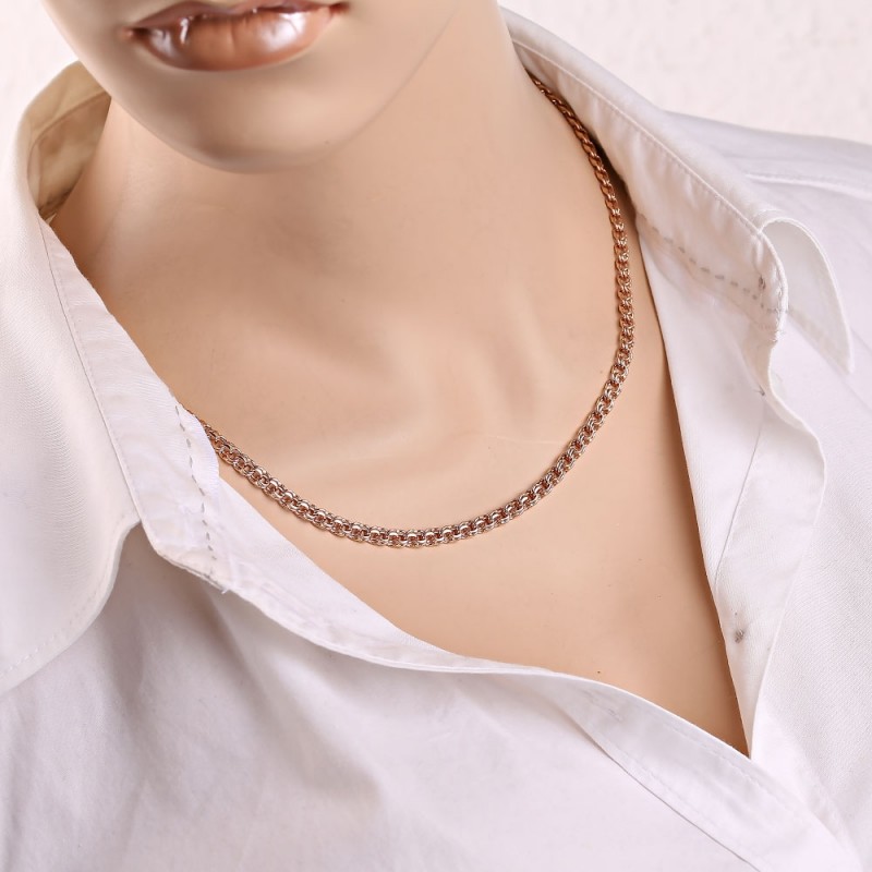 красного золота 585 пробы Бисмарк. Красивая цепочка, тесьма Бисмарка в бриллиантовой обработке, из