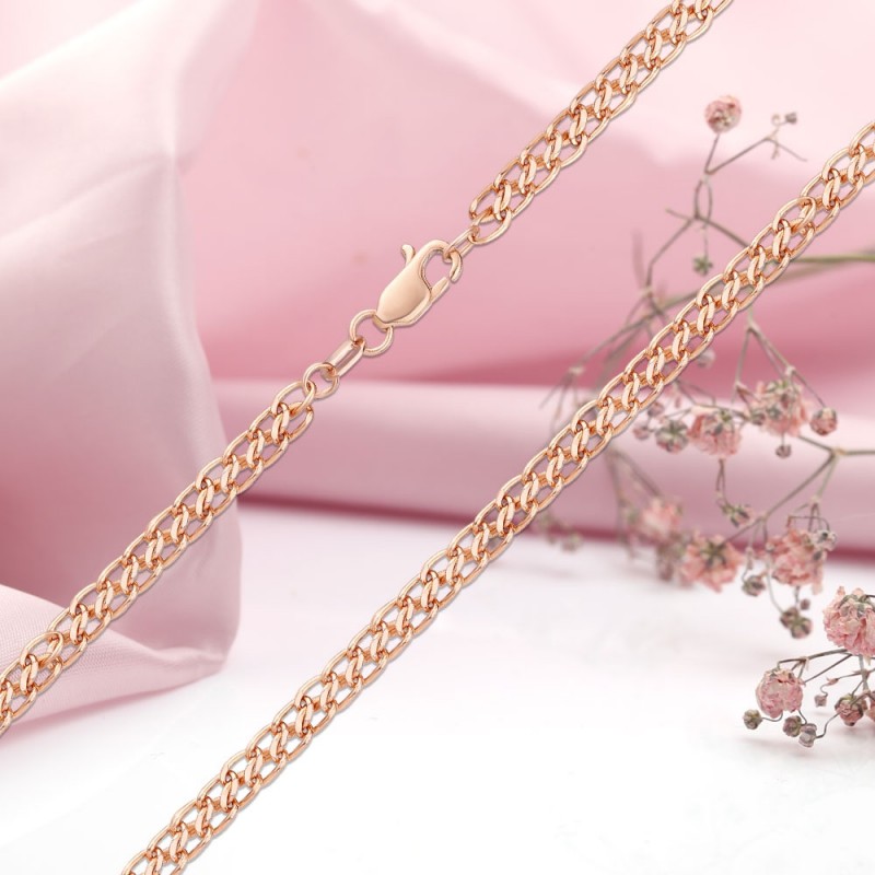 бордюрных цепочек – один из самых популярных видов колье сегодня. Этот вид вязания разнообразен, красив и практичен. Двусторонняя шлифовка звеньев придает им блеск и привлекательность. Бордюрное плетение долговечно и надежно. Прекрасно подчеркнет Вашу индивидуальность и надежность!