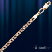 Изделие по заказу фирмы AUDITOR Золотая цепочка из красного русского золота 585°. В магазинах доступны цепочки длиной от 45 до 60 см и браслеты 18 и 19 см шириной 3 мм.