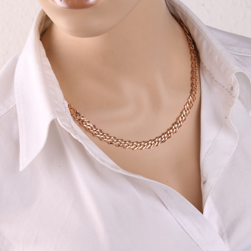 «Бриллиантовая цепочка» обычно бывает двойной и тройной: благодаря особому плетению и ширине звеньев такие цепочки хорошо подходят как самостоятельное украшение, но в сочетании с кулоном они смотрятся чудесно. Свет отражается от конечностей необычным образом. Колье надолго сохраняет свой первоначальный праздничный блеск и красоту.