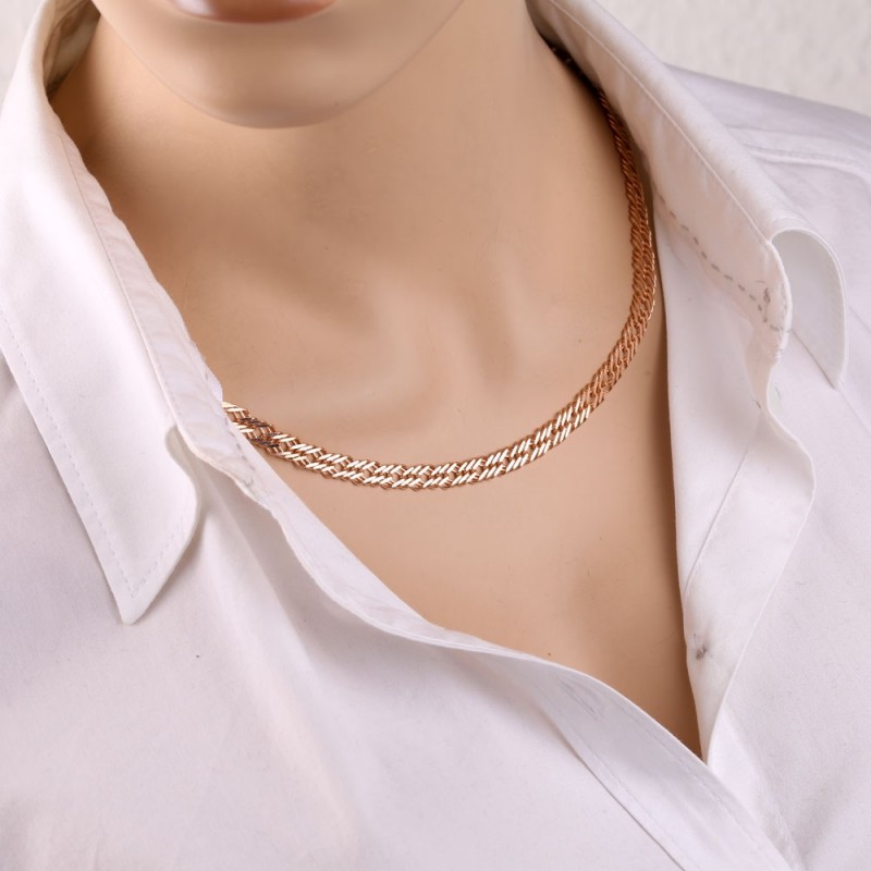 Бриллиантовая цепочка» обычно бывает двойной и тройной: благодаря особому плетению и ширине звеньев такие цепочки хорошо подходят как самостоятельное украшение, но в сочетании с кулоном они смотрятся чудесно. Свет отражается от конечностей необычным образом. Колье надолго сохраняет свой первоначальный праздничный блеск и красоту.