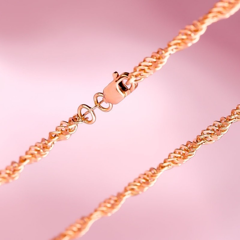 Тонкая золотая цепочка "Сингапур" из красного российского золота 585 пробы. В продаже имеется цепочка длиной от 40,0 до 50,0 см диаметром ¢ 0,5 мм