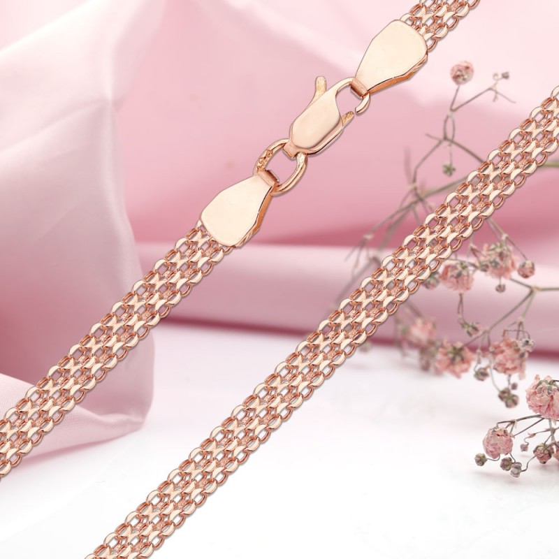 красного золота 585 пробы. Звенья цепи обработаны алмазной огранкой, прекрасно блестят и сверкают в лучах света!