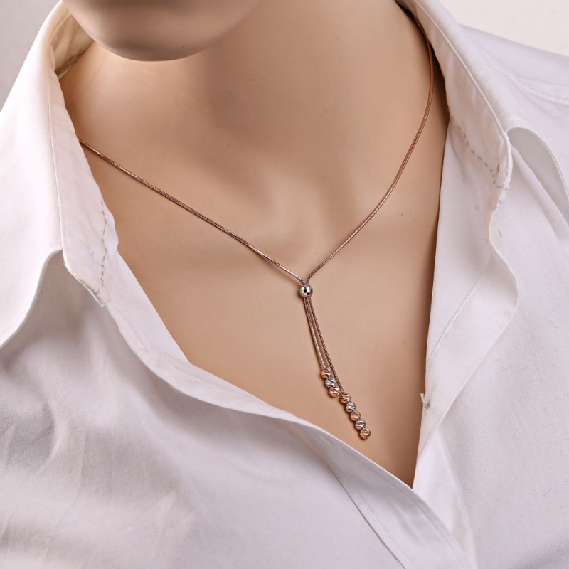 Элегантное и женственное колье классического «змеиного» плетения из 18-каратного белого/розового золота! Изделие выглядит богато и привлекает восхищенные взгляды окружающих тем, что переливается и сверкает на солнце. На концах цепочки в виде подвесок висят шары с бриллиантовой огранкой из белого и