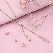 Элегантное и женственное колье классического «змеиного» плетения из 18-каратного белого/розового золота! Изделие выглядит богато и привлекает восхищенные взгляды окружающих тем, что переливается и сверкает на солнце. На концах цепочки в виде подвесок висят шары с бриллиантовой огранкой из белого и