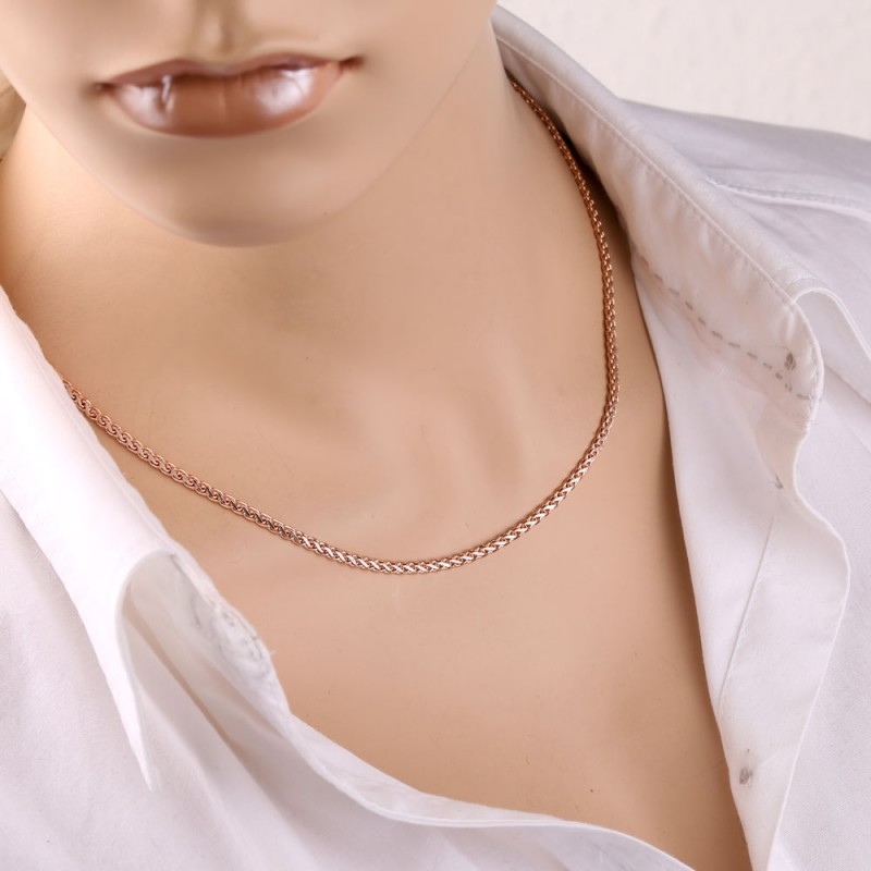 колос» — это подвид доспехового плетения, напоминающий колосья пшеницы. Золотые цепочки в таком виде выглядят особенно эффектно. А бриллиантовая огранка подчеркивает блеск. За счет плотного прилегания элементов «Ухо» получается структурированным, объемным и достаточно прочным. Этот вариант обладает гибкостью, но его сложно перепутать, он прекрасно подходит для повседневной жизни. Сложность исполнения высокая, цена приемлемая.