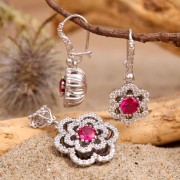Набор из стерлингового серебра 925 пробы ручной работы со сверкающими фианитами и рубиновыми фианитами! Женщины издавна пытались подчеркнуть свою красоту, хрупкость и обаяние с помощью украшений. Восточные женские украшения многолики. Они могут отражать как изящество, так и скромность и экстравагантность образа. Украшения в восточном стиле традиционно изготавливались ювелирами в виде целых комплектов, включающих браслеты, серьги, кольца и ожерелья. Так красивые восточные женщины приобрели впечатляющую яркость.