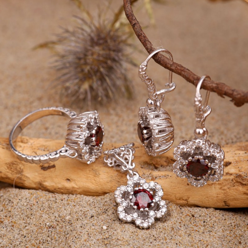 Набор из стерлингового серебра 925 пробы ручной работы со сверкающими фианитами и фианитами гранатового цвета! Женщины издавна пытались подчеркнуть свою красоту, хрупкость и обаяние с помощью украшений. Восточные женские украшения многолики. Они могут отражать как изящество, так и скромность и экстравагантность образа. Украшения в восточном стиле традиционно изготавливались ювелирами в виде целых комплектов, включающих браслеты, серьги, кольца и ожерелья. Так красивые восточные женщины приобрели впечатляющую яркость.