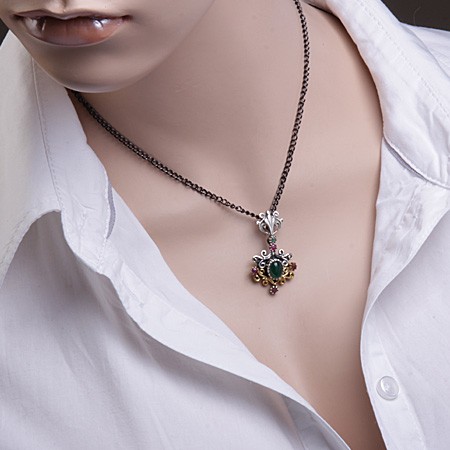 Набор из черненого серебра 925° с Изумруды ( 8 x 5 мм), Изумруды ¢ 2 мм< /span>, Рубины ¢ 3 мм. Комплект состоит из кулона и Серьги