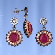 Набор из черненого серебра 925° с Рубины, Фианиты. Комплект состоит из кулона и серьг