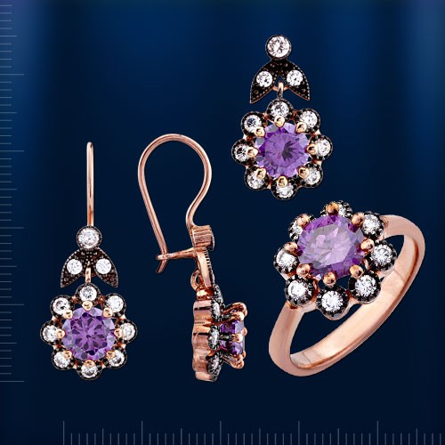 Набор из черненого серебра 925° с фианитами. Комплект состоит из серьг, Трейлер< /span>и позвоните< /span>