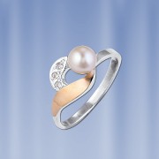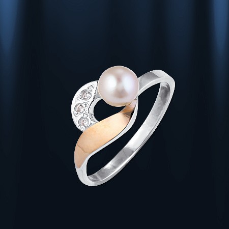 Кольцо выполнено из серебра 875° и красного золота 585°. Вставка: жемчуг Ø 6 мм, цирконий Ø 1 мм