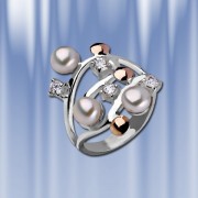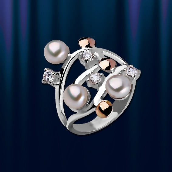 Кольцо из серебра 875 пробы и золота 585 пробы. Вставка: жемчуг, циркон.