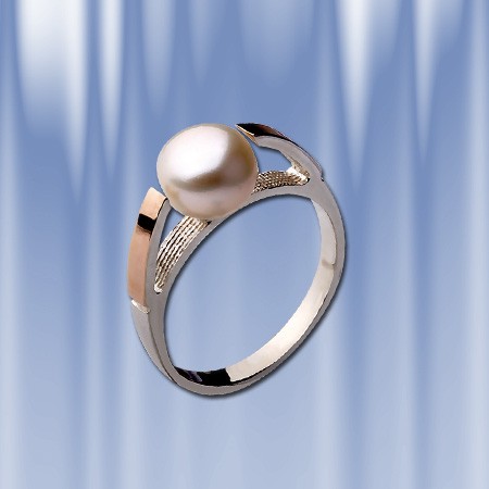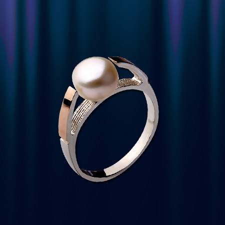Кольцо из серебра 875° и золота 375°. Вставка: Жемчуг.