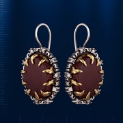 Серьги из черненного серебра 925° с агатом (12 х 17 мм), фианитами ¢ 1,5 мм с французским замком.
