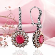 Серебряные серьги с Ruby Corundum и цирконием в бронзовой раме - почерневшие серебро 925 с французским закрытием.