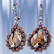 Серьги из черненного серебра 925° с аммолитом, рубинами. Высота ок. 40 мм. Ширина ок. 19 мм. Серьги с французским замком – просто, надежно и долговечно.